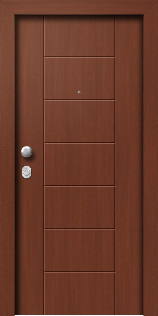 Πόρτα ασφαλείας λούστρο με εσωτερική επένδυση επίπεδη σε χρώμα επιλογής σας και εξωτερική επένδυση λούστρο Νο4-ΚΕΡΑΣΙΑ με σχέδιο πρεσαριστό Κ107.