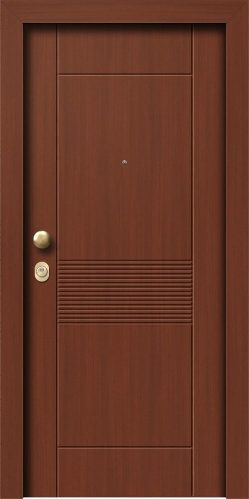 Πόρτα ασφαλείας λούστρο με εσωτερική επένδυση επίπεδη σε χρώμα επιλογής σας και εξωτερική επένδυση λούστρο Νο4-ΚΕΡΑΣΙΑ με σχέδιο πρεσαριστό Κ116.