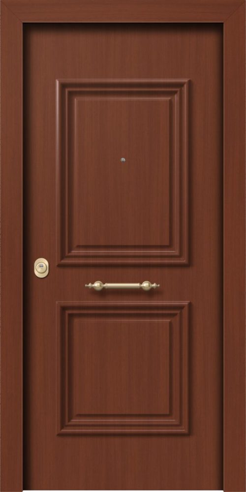Πόρτα ασφαλείας λούστρο με εσωτερική επένδυση επίπεδη σε χρώμα επιλογής σας και εξωτερική επένδυση λούστρο Νο4 – ΚΕΡΑΣΙΑ με σχέδιο παραδοσιακό Κ200.