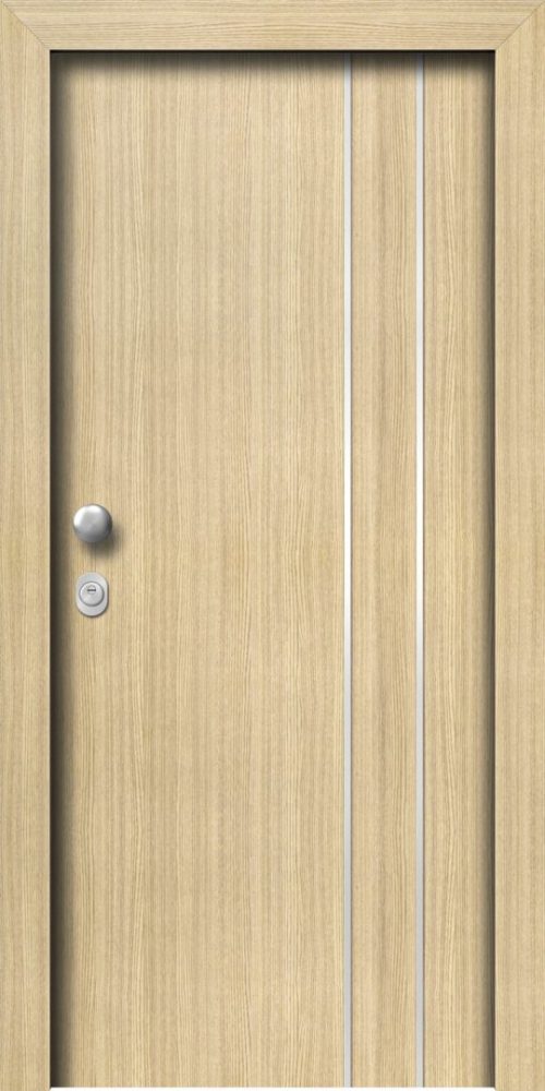 Πόρτα ασφαλείας laminate με εσωτερική επένδυση επίπεδη σε χρώμα επιλογής σας και εξωτερική επένδυση LAMINATE WOOD SABLE με σχέδιο L801.