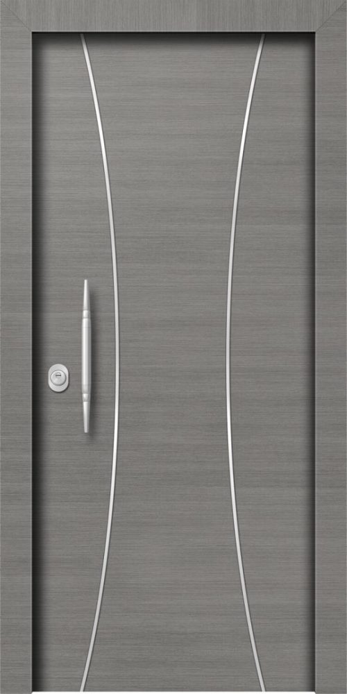 Πόρτα ασφαλείας laminate με εσωτερική επένδυση επίπεδη σε χρώμα επιλογής σας και εξωτερική επένδυση LAMINATE GRIZIO με σχέδιο L805.