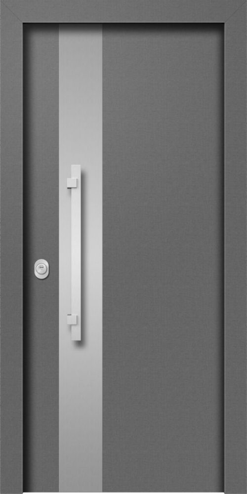 Πόρτα ασφαλείας laminate με εσωτερική επένδυση επίπεδη σε χρώμα επιλογής σας και εξωτερική επένδυση LAMINATE GREY με σχέδιο L806.