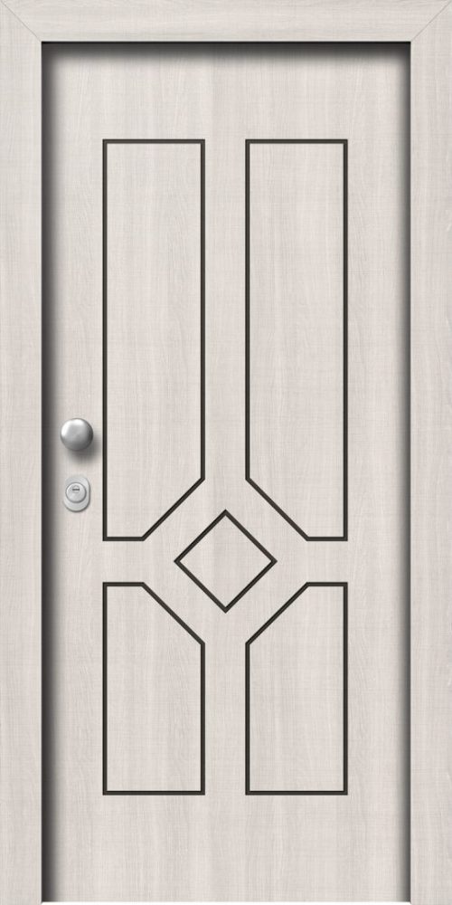 Πόρτα ασφαλείας laminate με εσωτερική επένδυση επίπεδη σε χρώμα επιλογής σας και εξωτερική επένδυση LAMINATE SABBIA με σχέδιο L813.